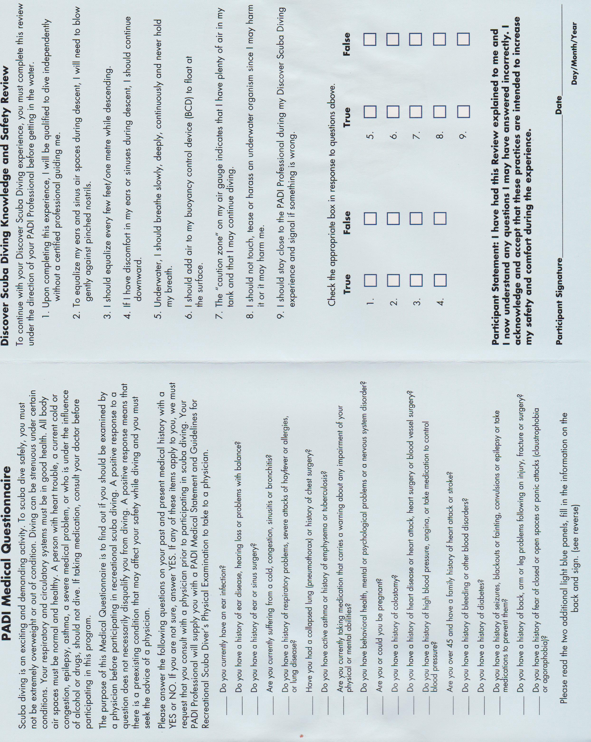 PADI Medical Waiver